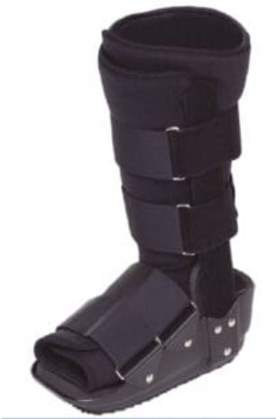 Esguince de tobillo de todos los grados. Lesión en los tejidos blandos de la pantorrilla, pie y/o tobillo. Fractura distal por estrés de la tibia y peroné. Fractura estable del pie y /o tobillo. Post ORIF (reducción abierta y fijación interna) y estabilización quirúrgica después de reparaciones de tendones y/o ligamentos. Cirugía del tendón de Aquiles. Fascitis plantar. -